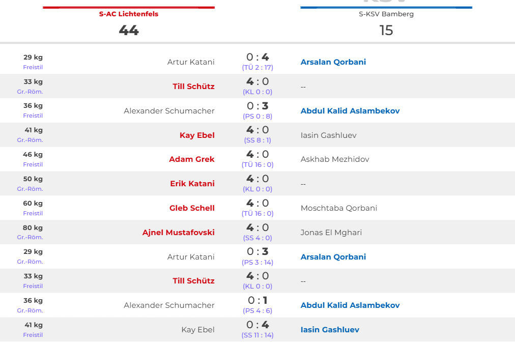 Eagles dominieren das Derby gegen Markneukirchen / Gelenau Mit einem am Ende sehr deutlichen 22:2 und insgesamt neuen Einzelsiegen bezwingen die Eagles aus Lichtenfels vor heimischem Publikum die WKG Markneukirchen/ Gelenau Beide Teams gingen ersatzgeschwächt in das mit Spannung erwartete Derby. Auf Seiten der Eagles fehlte Publikumsliebling Maxi Schwabe krankheitsbedingt und Ahmet Duman, der auf…