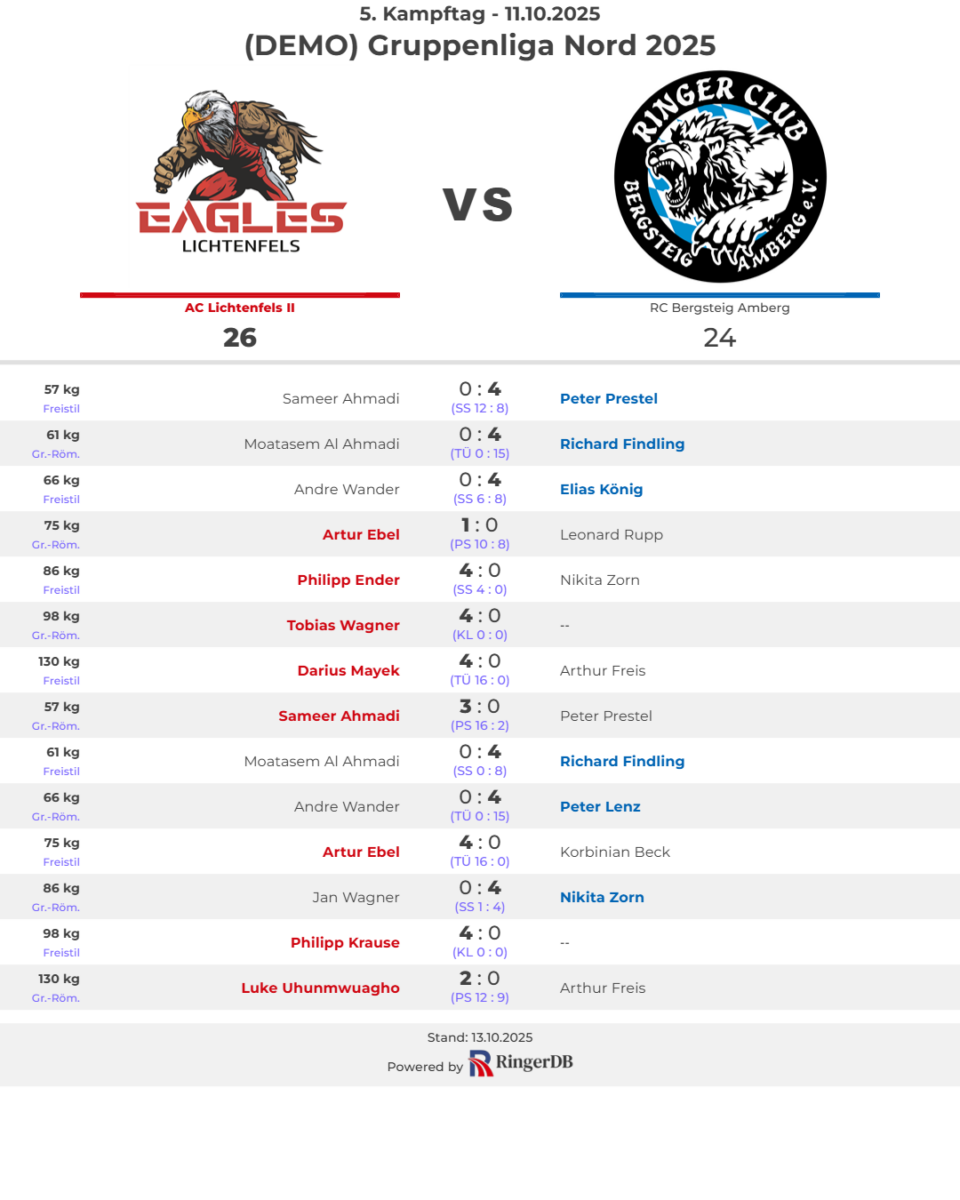 Eagles- Reserve ebenfalls erfolgreich Im Vorfeld des Bundesliga- Derbys zwischen dem AC Lichtenfels und der WKG Markneukirchen/ Gelenau empfingen am vergangenen Samstag die Reserve- und die Schülermannschaft die Staffeln des SC Nürnberg 04. Beide AC- Staffeln konnten sich erfolgreich gegen die Teams aus der Maxvorstadt durchsetzen. In der Gruppenliga Nord trafen die Reservestaffeln des AC…