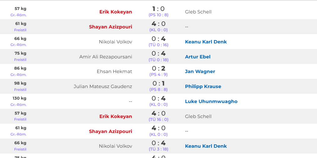 Am Ende siegten die „Gäste aus Lichtenfels“ mit 18:25 und konnten mit acht Einzelsiegen den zweiten Platz in der Gruppenliga – Nord hinter dem Meister aus Burgebrach verteidigen. Keanu Denk konnte für den ACL beide seiner Kämpfe in der Klasse bis 66kg überlegen gewinnen. Philipp Krause gewann gegen seinen Kontrahenten einmal knapp nach Punkten und unterlag im anschließenden Schwergewichtskampf knapp. Artur Ebel gewann im Limit bis 75kg im Freistil überlegen. Jan Wagner und Philipp Ender gewannen beide in der Klasse bis 86kg nach Punkten. Ohne Gegner wurden Luke Uhunmwuagho und Tobias Wagner zum Sieger erklärt. Gleb Schell und Imer Salifoski unterlagen in ihren Kämpfen.