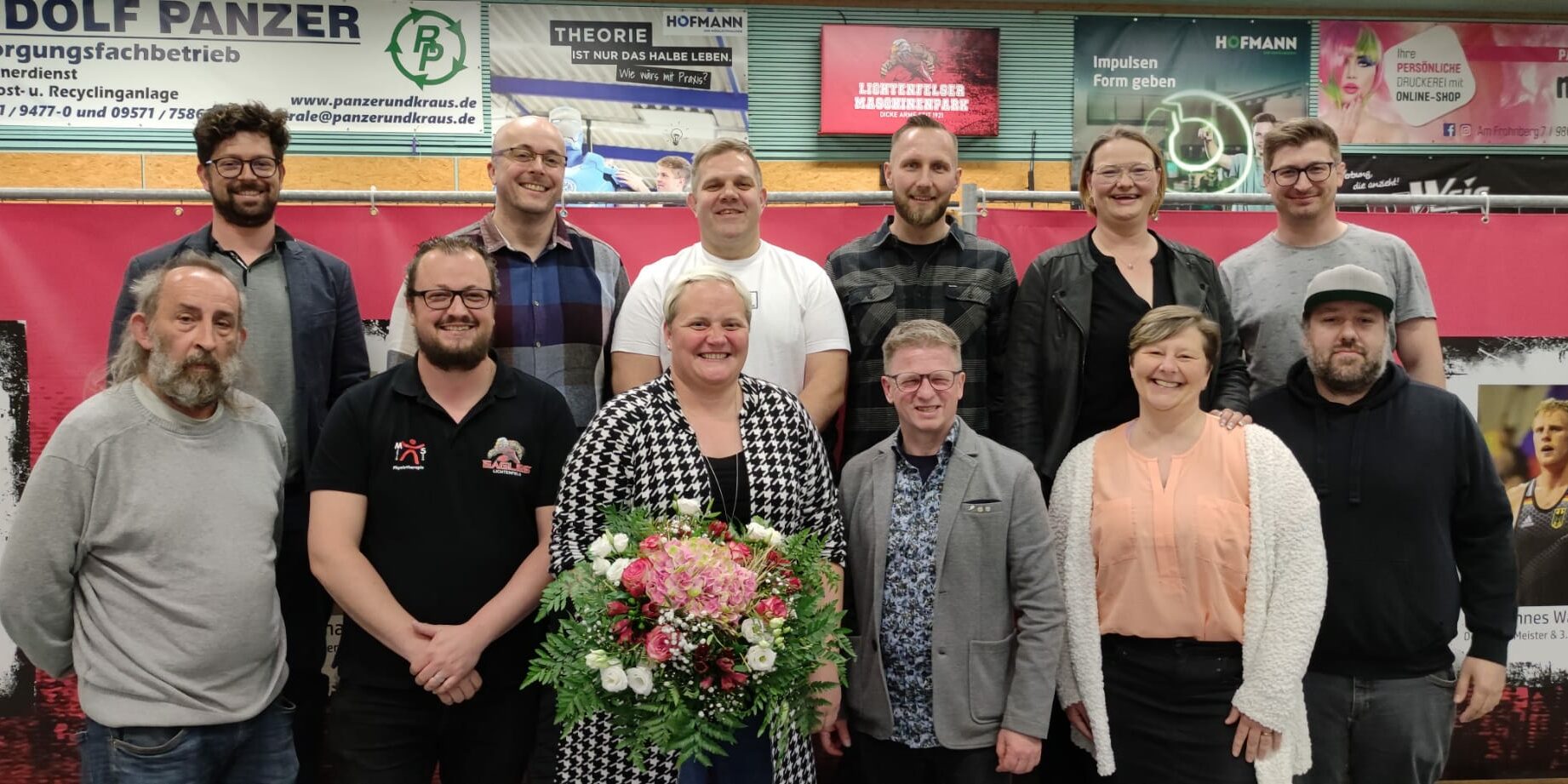 Wen genau diese Überlegungen künftig beschäftigen werden, wurde ebenfalls ausgemacht. Britta Beier wurde in ihrem Amt als erster Vereinsvorstand bestätigt, ebenso bleibt Ralf Hirle weitere zwei Jahre verantwortlich für den Verein. Allerdings wird er künftig den Posten des stellvertretenden Vorstands bekleiden, der damit freigewordene 3. Vorstand wird künftig Kevin Tischer sein, der nicht erst seit seiner Zeit als Mannschaftsführer während Lichtenfels‘ erster Bundesligazeit eng mit dem Verein verbunden ist. Stefan Mehl scheidet damit aus der Vorstandschaft und wird sich künftig ohne offiziellen Posten im Verein engagieren. Britta Beier dankte Stefan Mehl für seine langjährige Tätigkeit als 2. Vorstand und verabschiedete Ihn mit einem Blumenstrauß. Stefan wird aber weiterhin für den Verein/GmbH tätig bleiben, wenngleich auch im Hintergrund.