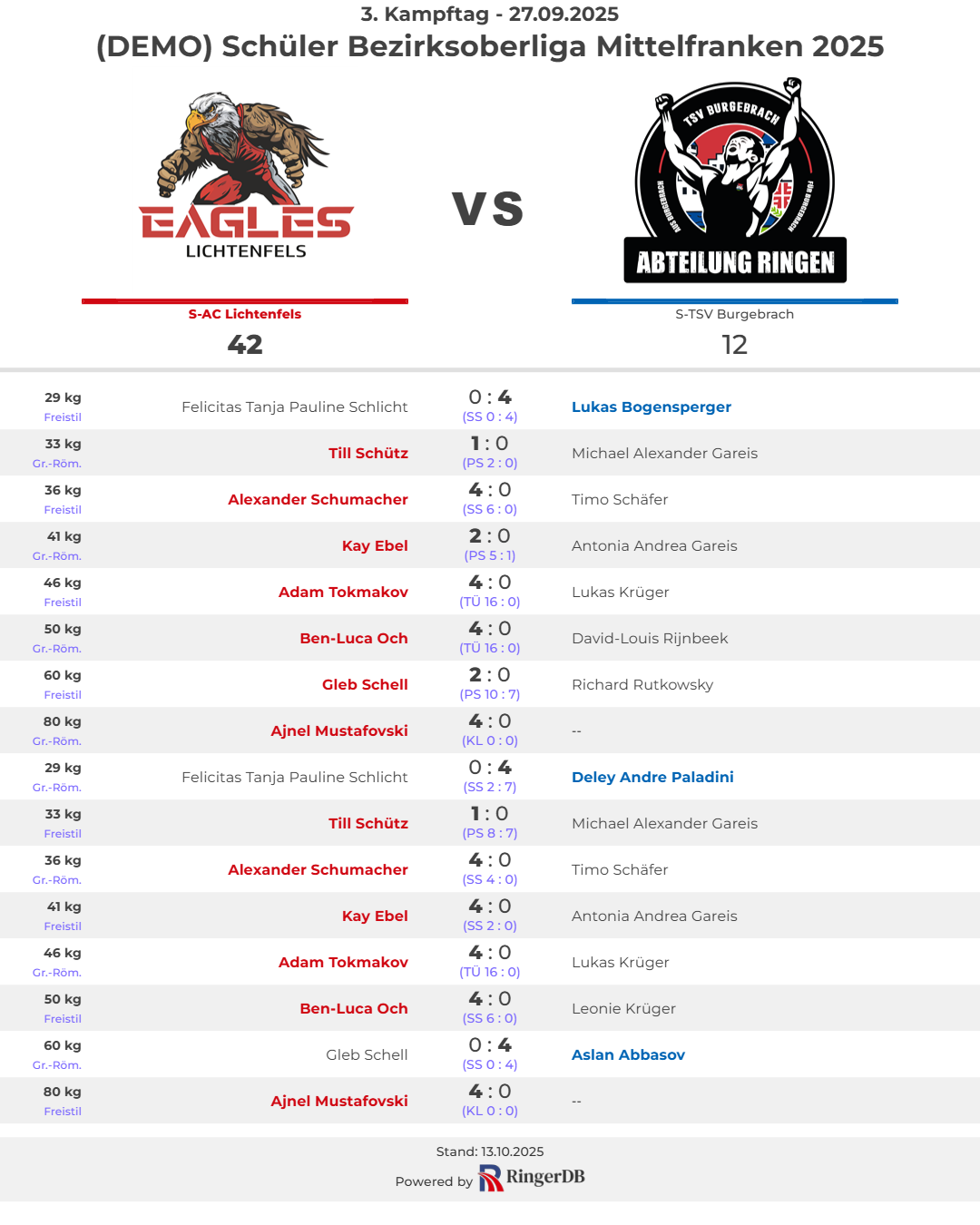 Okt.132025Jugend Kategorie: JugendVon adminOktober 13, 2025 Autor: admin KommentarnavigationZurückVorheriger Beitrag:Eagles-Reserve bezwingt TV Erlangen IINächstesNächster Beitrag:Knapper Sieg gegen RC Bergsteig AmbergRelated postsJungadler weiterhin auf dem HöhenflugOktober 13, 2025Alexander Schumacher ist Bayerischer MeisterMärz 11, 2024EAGLES-Juniors verteidigen MeisterschaftstitelDezember 12, 2023Siegbert Koch spendet 500,00 Euro für die JugendabteilungDezember 7, 2023Meistertitel für Jung-AdlerDezember 14, 2022Eagles-Nachwuchs nicht zu stoppenNovember 9, 2022